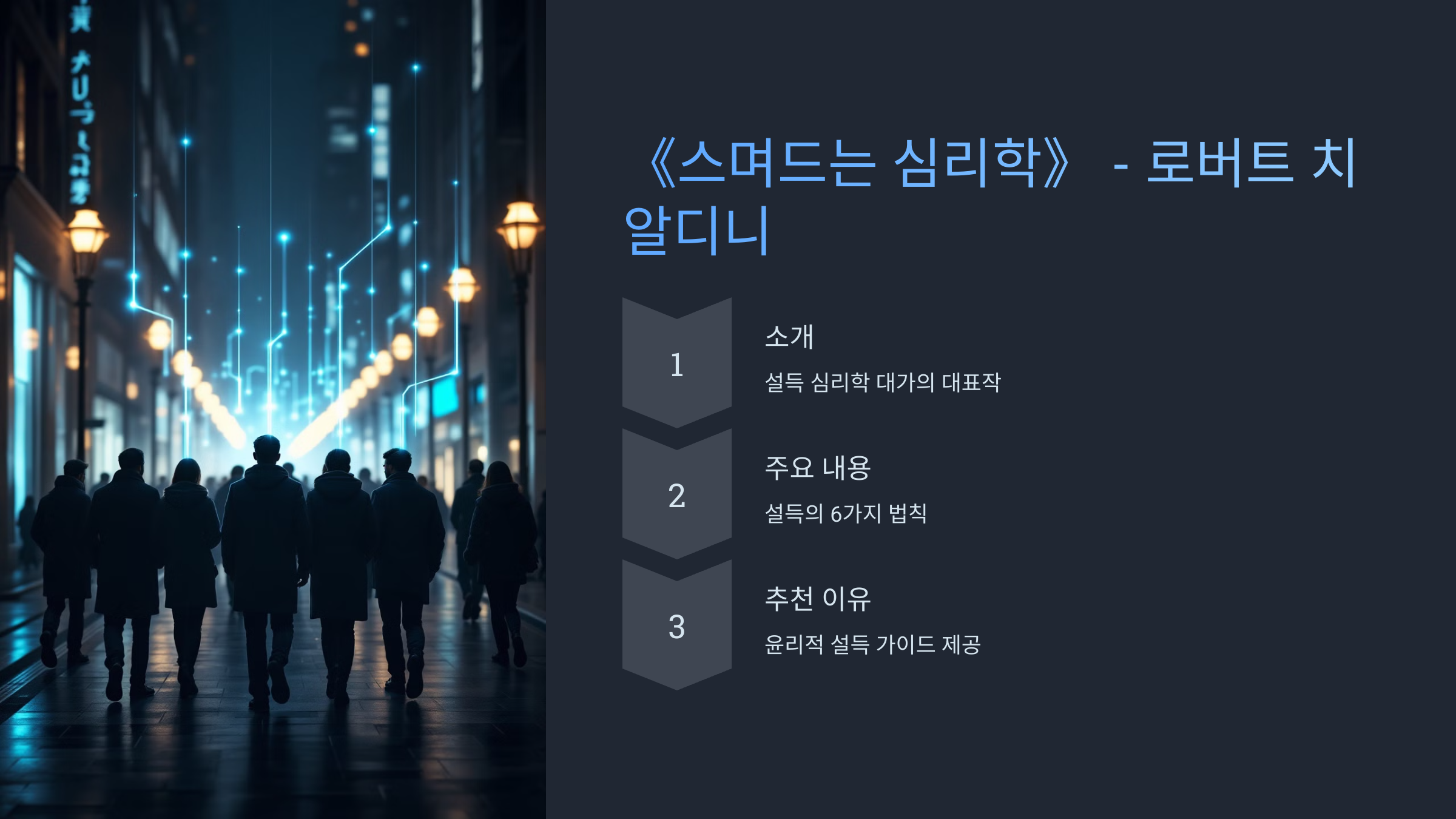 - 설득의 6가지 법칙: 상호성, 희소성, 사회적 증거 등